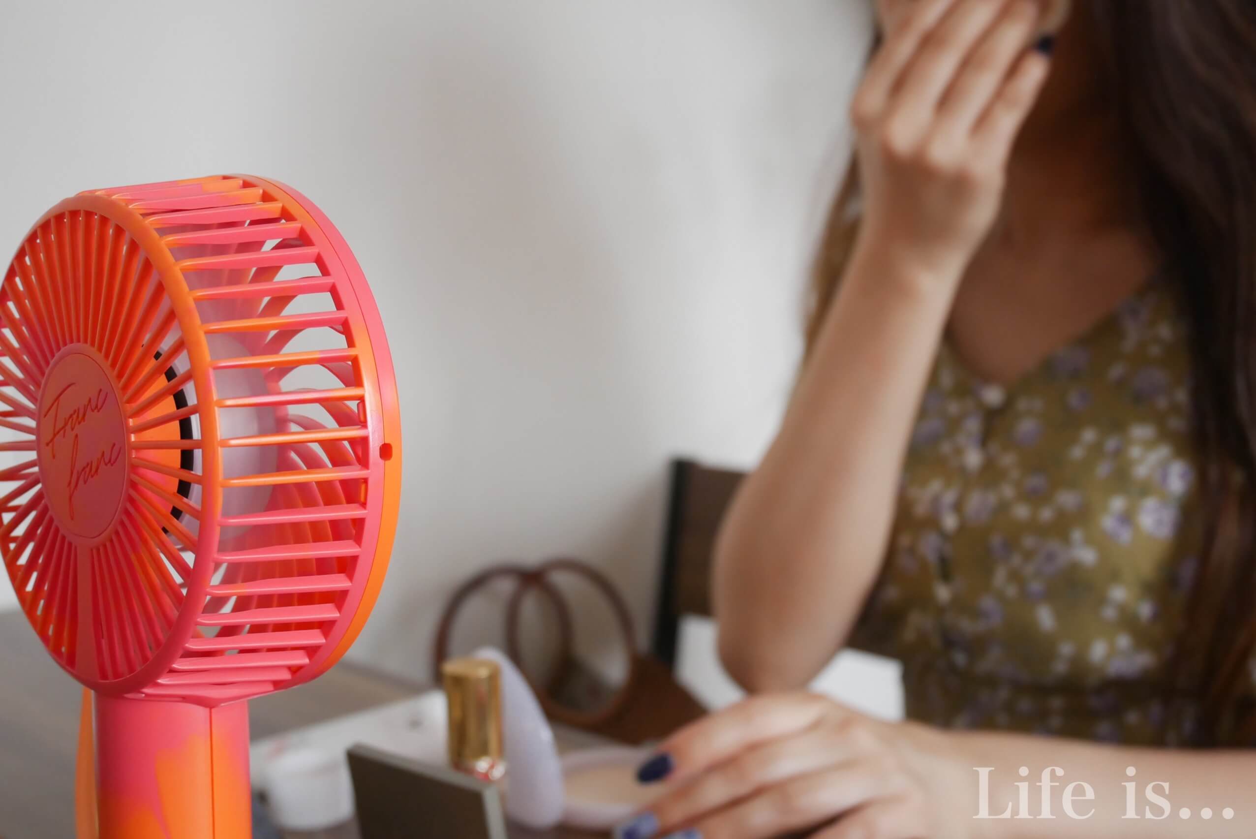 今の時期はメイクたり、髪を巻いてる最中など(私はホットカーラーで髪を巻くので顔まわりがめっちゃ暑い)