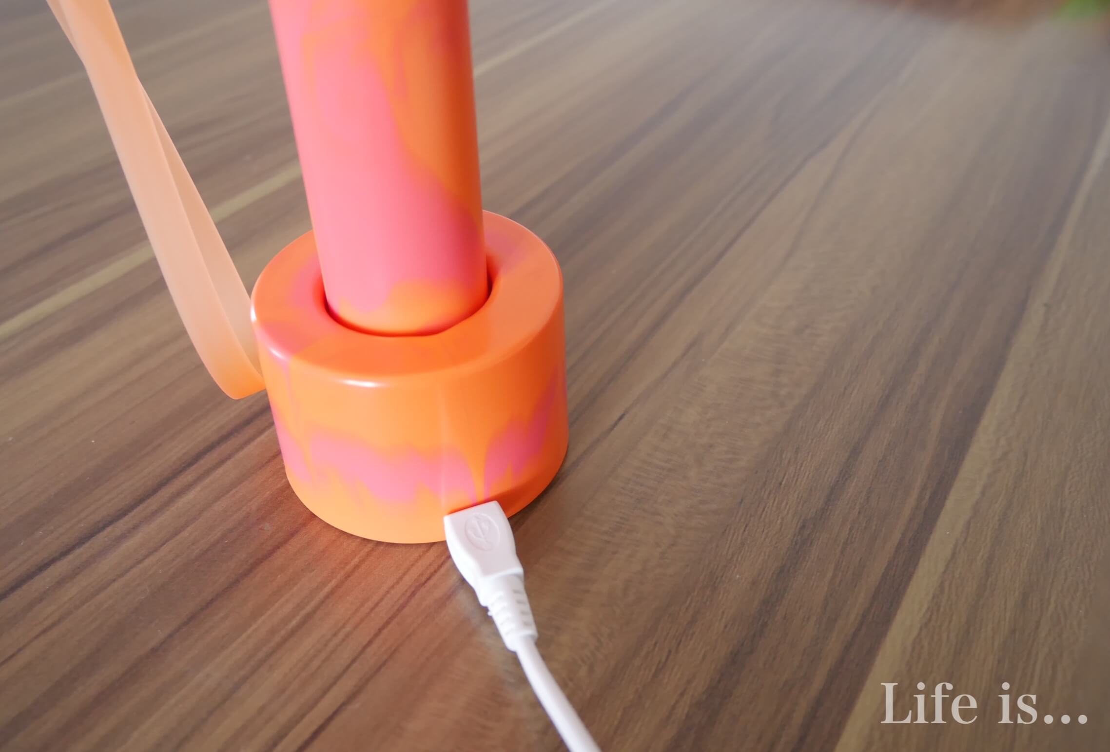 充電は付属の充電スタンドを使うか、ハンディ扇風機に直接USBケーブルを差して充電さます。